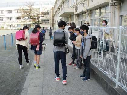 今週はあいさつ週間です。朝、代表委員の人たちが6組教室前や体育館前、4・5年生の昇降口前で「おはよう」のあいさつをしています。元気でさわやかなあいさつをして気持ちのよい一日を過ごしましょう。
