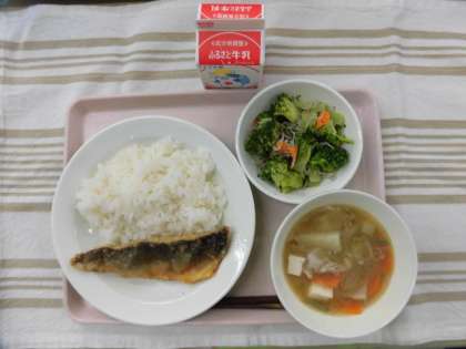 ごはん ホッケのから揚げ 豚汁 ブロッコリーのじゃこ炒め 牛乳