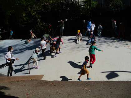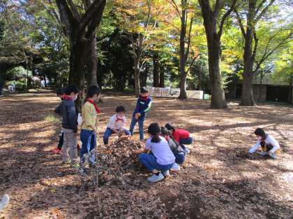 りす公園の遊具で遊んだり、自由広場でどんぐり拾いや落ち葉遊びをしたりしました。