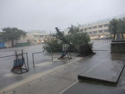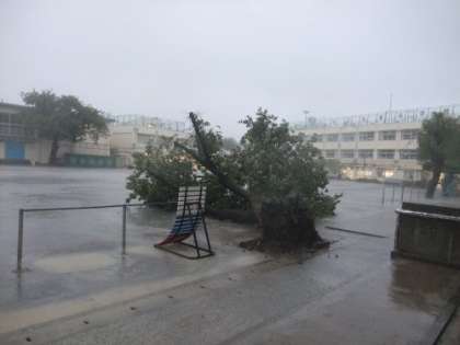 6組の前の桜の木が、強風にあおられて倒れてしまいました。台風