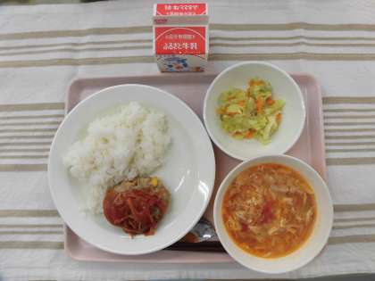 ごはん 牛乳 お野菜いっぱいハンバーグ アクアコッタ キャベツのカレー炒め 牛乳