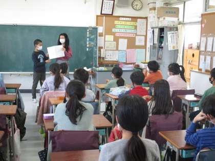 11月24日(水)〜11月29日(月)に校内で行うユニセフ募金活動のために、代表委員児童が「ユニセフ募金が世界の子どもたちのためにどのように使われるか」各教室へ説明と協力のお願いに行きました。