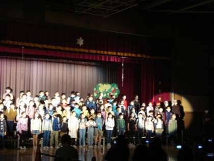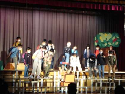 子どもたちが宝物を探しに冒険に出ます。フクロウに励まされながら途中様々な困難に出会いますが、最後に手にした宝物は「わたしたちひとりひとり」。3年生の団結力を感じました。