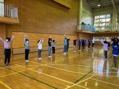 今朝の体操は、弦巻小学校が担当です。4、5年生がお手本でがんばりました。