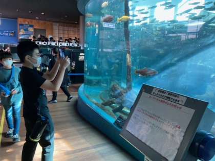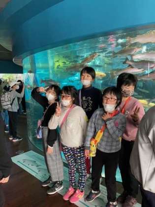 ?快晴なのですが、午前中は気温が低いので、公園で2時間過ごすのは厳しいと判断し、水族館見学に変更です。富士の湧水を使った淡水魚専門の水族館です。