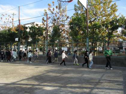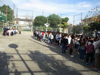 今日の避難訓練は、近隣で火災がおきた想定で、小泉公園に二次避難を行いました。