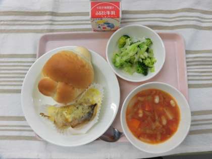 ミルクパン タラのパン粉焼き ミネストローネ グリーンサラダ 牛乳