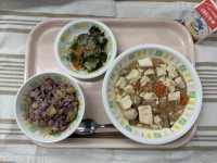 五目ごはん ワカサギの天ぷら おなべ 牛乳