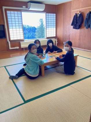 避難訓練、館内巡りを終え、部屋で一息ついてます。