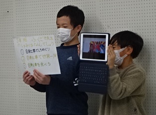 今日の朝会は集会委員会によるテレビ集会でした。弦巻小学校のいろいろな先生たちに関するクイズで盛り上がりました。