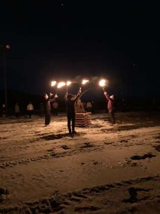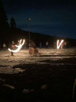 補助員さんとカメラマンさんによるファイヤーダンスで、キャンプファイヤーが始まりました。
