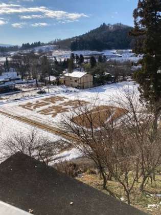 田んぼアートに願いがこもっています。