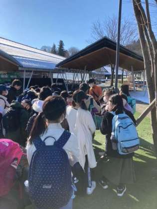村巡りのゴールです。ガイドの方にお礼の挨拶。あったかくなってきました。
