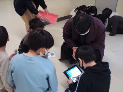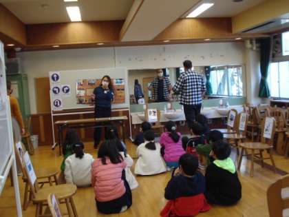 ネイティブスピーカーの英語にじかに触れる体験をしました。グループに分かれて様々な活動を行いました。とても楽しそうでした。