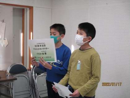 代表委員会からは、来年度80周年に向けて作成する「弦小マスコット」の投票について話がありました。