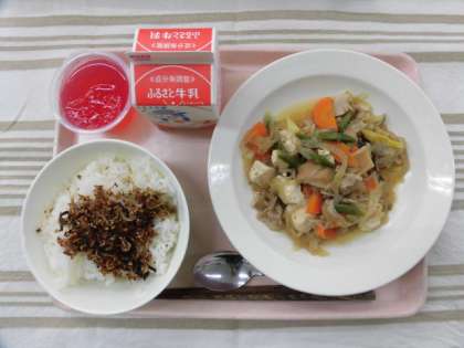 ごはん 骨太ふりかけ すきやき煮 1月のガーネットゼリー 牛乳