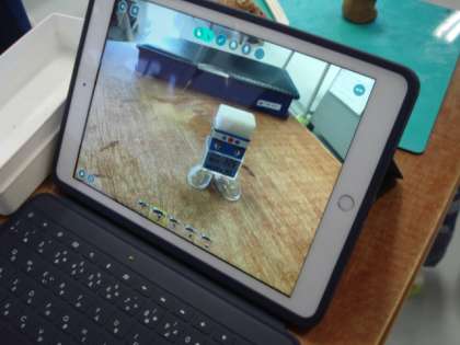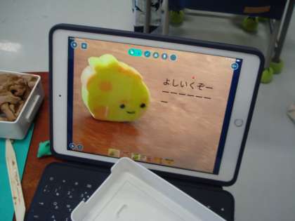 粘土や消しゴムなどを主人公にして、少しずつ動かしながら写真に撮り、それをロイロノートでコマ送りにして、アニメーションを作っていました。おうちでオンライン参加している子も一緒にできる図工ということで学年の先生方が考えました。