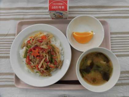 冬の彩りごはん 豆腐とわかめのみそ汁 デコポン 牛乳