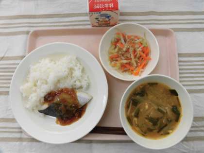 ごはん サワラのねぎソース チゲスープ ナムル 牛乳