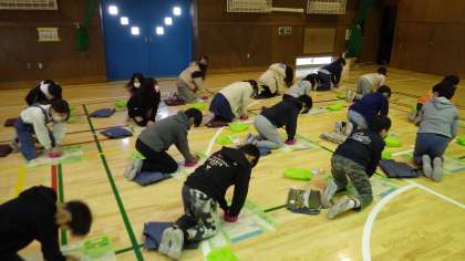 その後は、救急救命の方法について、ご指導いただきました。改めて命の大切さと一歩踏み出す勇気の必要性について考える良い機会となりました。