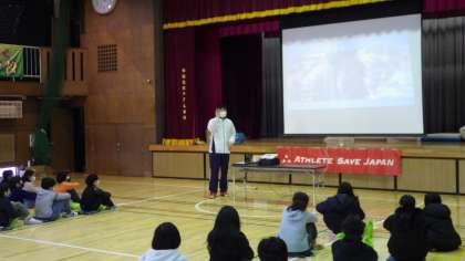 オリンピック・パラリンピック教育の一環として、命の教室を行いました。元ハンドボール日本代表チームのキャプテンの方にお越しいただき、「努力することの大切さ」や「挑戦することの素晴らしさ」を教えていただきました。