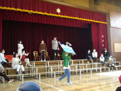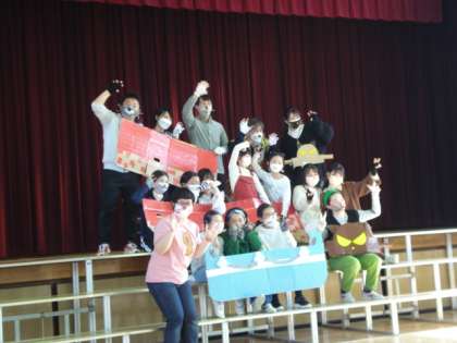 PTAサークル「劇団家族座」の公演が2年ぶりに行われました。コロナ禍での開催ではありましたが、たくさんの知恵と工夫が施されていました。マスクをつけて、そのマスクには猫の口髭がありました。そうです、猫のお話です。のびのびと演じる子どもたちの姿に目頭が熱くなりました。(校長)