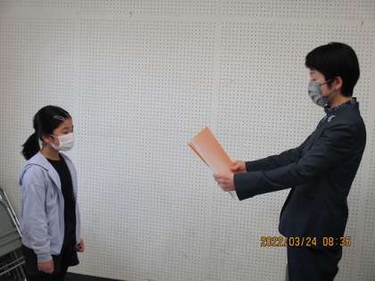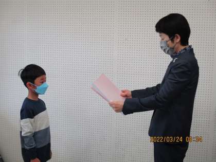 各学年の代表児童が、修了証を校長先生から受け取りました。子どもたちの立派な姿に成長を感じました。