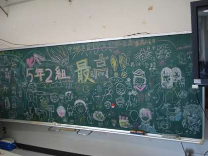 5年生以下は、今日が、今年度最後の日です。先生から一人一人メッセージをもらったり、子どもたちからのメッセージが黒板に書いてあったり、クラスごとに様々なお別れの姿がありました。