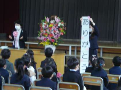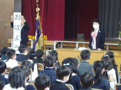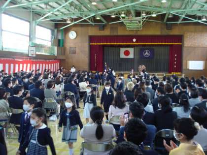 137名の1年生が入学しました。3年ぶりの4クラスそろった入学式でした。「おはよう」と「ありがとう」を大切に使っていくと、学校生活が気持ちよく楽しく過ごせるという話をしました。ちゃんとお話が聞ける1年生でとても立派でした。明日の朝、門で待ってます。(校長)