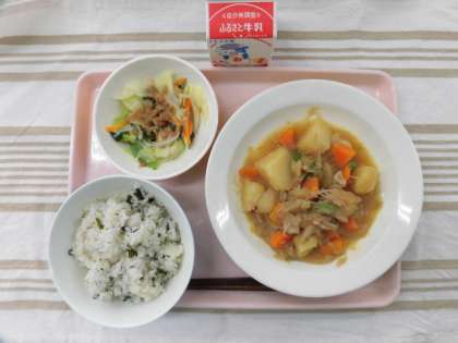 胚芽わかめごはん 肉じゃが ごま和え 牛乳
