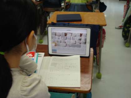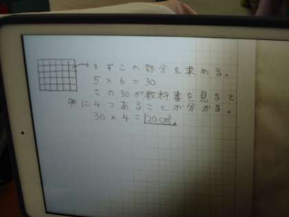 体積の学習をしていました。友達の考え方をロイロノートで見ながら自分の考えと比べ、より良い解決法を探っていました。