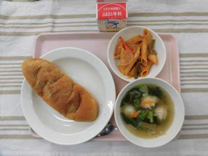 きなこ揚げパン 肉団子スープ ペンネソテー 牛乳