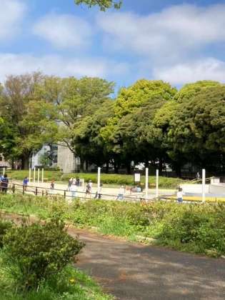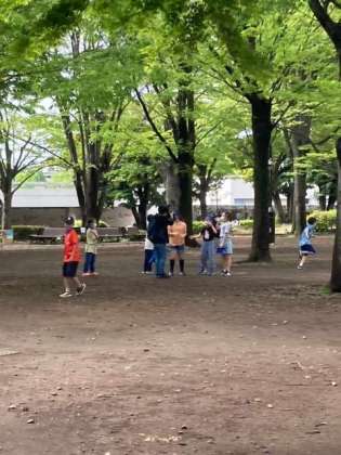 自由広場、じゃぶじゃぶ池では、だるまさんがころんだや鬼ごっこ。思い切り走って楽しそうです。