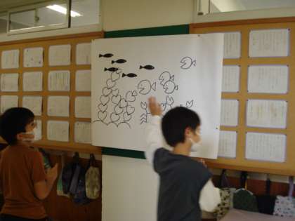 朝の天気が不安定だったので、5年生の遠足は延期しました。さぞや、がっかりしているのではと思い教室に行くと、落ち着いて学習に取り組んでいました。仲間と協力するお絵かきゲームをしているクラスもありました。予備日の13日は晴れますように。