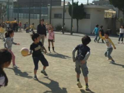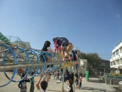 ほとんどの子どもたちが外で元気よく遊んでいます。