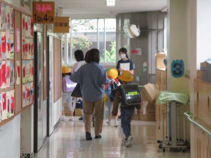 天候が悪かったため、校舎内での引き取りとなりましたが、保護者の皆様の協力もあり、スムーズに訓練を行うことができました。