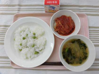 グリーンピースごはん お野菜いっぱいハンバーグ みそ汁 牛乳
