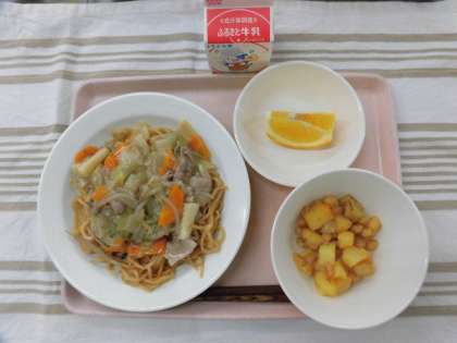 あんかけ焼きそば ビーンズポテト 甘夏みかん 牛乳