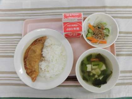 ごはん ジャンボぎょうざの甘酢あんかけ 中華スープ キャベツともやしのごまだれ 牛乳