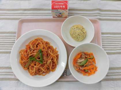 スパゲッティナポリタン にんじんのラペ 紅茶のスコーン 牛乳