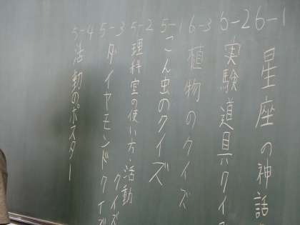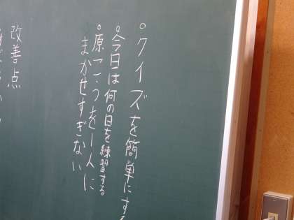 各委員会の黒板の様子です。日々の活動の振り返りや今後の活動予定が