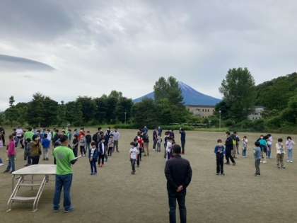 園庭に集まって体操です。