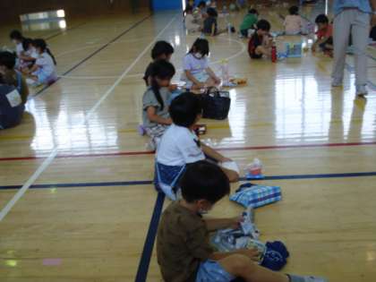 せめてお弁当だけでも、みんなで食べようと、体育館にエアコンを入れて、クラスごとに輪になって食べました。