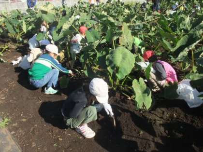 収穫の秋です。今日は、3年生がサトイモ掘りに出かけました。