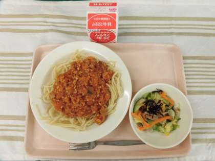 スパゲッティミートソース りっちゃんサラダ 牛乳