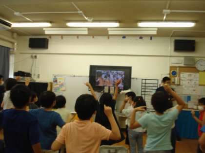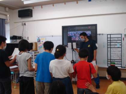 旭小学校・山崎小学校・三宿小学校・弦巻小学校の4校で、zoomによる交流会をしました。学校紹介、ダンス、ゲーム、歌など、画面越しですが楽しみました。