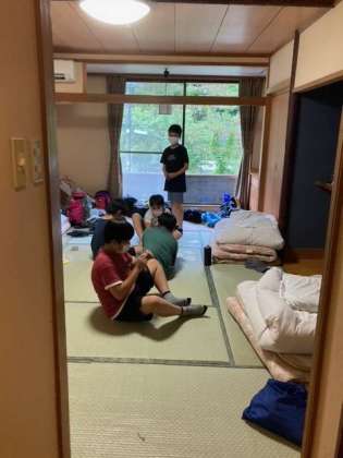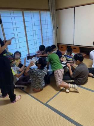 入浴してる裏の時間で、部屋でハガキを書いたり、トランプをしたりしています。
