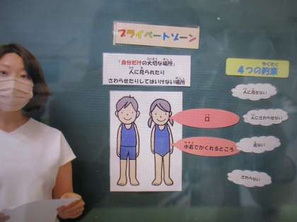始業式の後は、養護教諭から自分の体の大事なところに関してお話がありました。