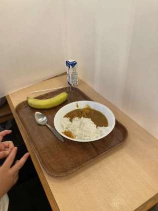 カレーライス、バナナ、牛乳です。食事係、よく頑張ってます。