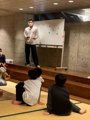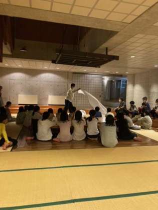 布団の敷き方や明日の朝のたたみ方の講習会が、入浴後に行われました。頭同士が近くならないように敷きます。